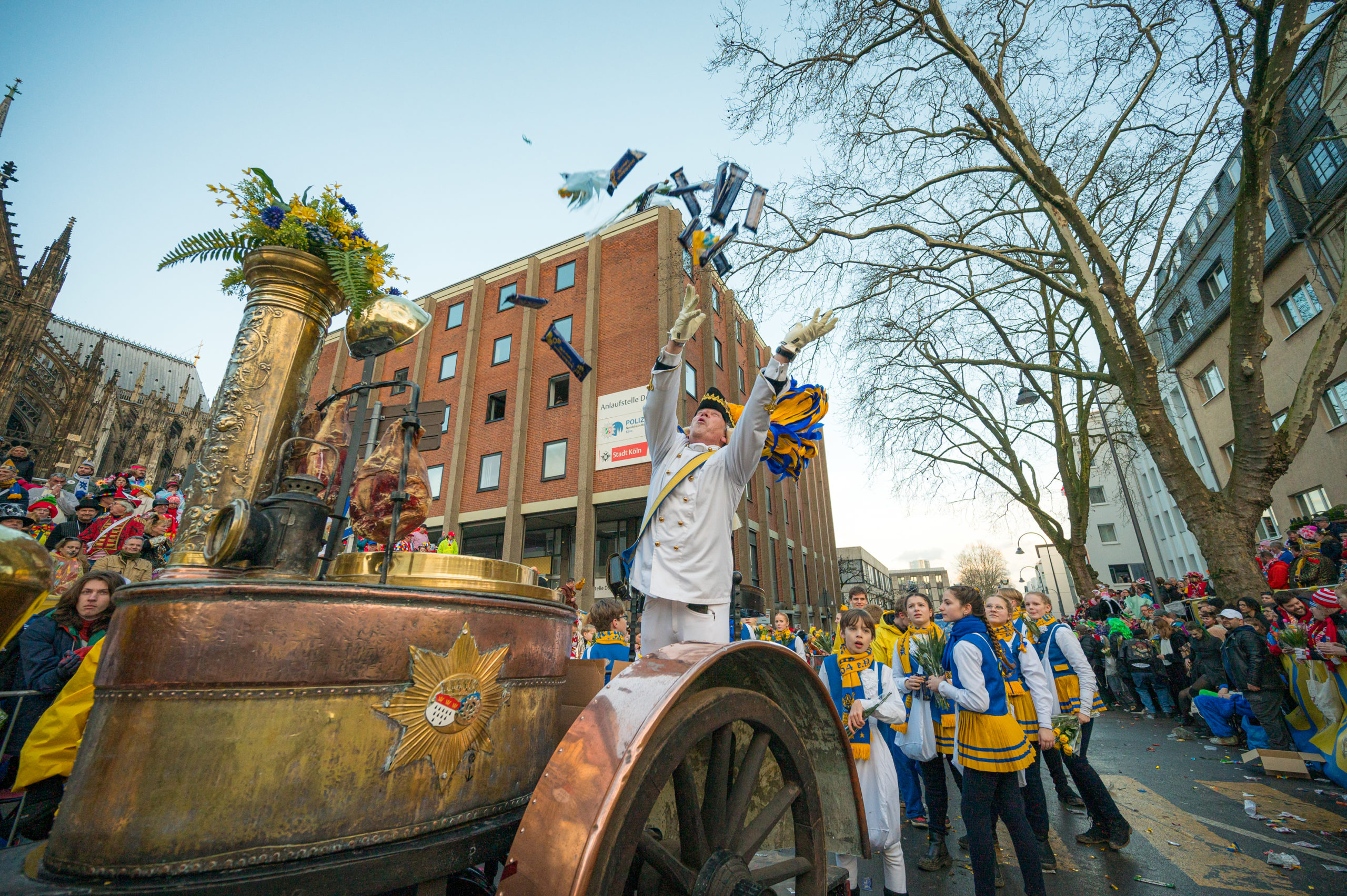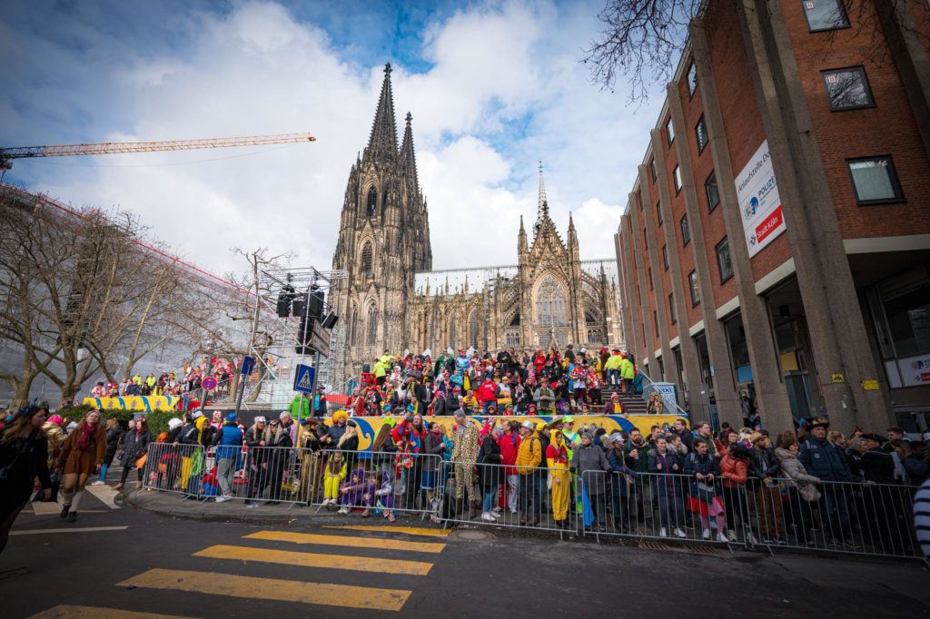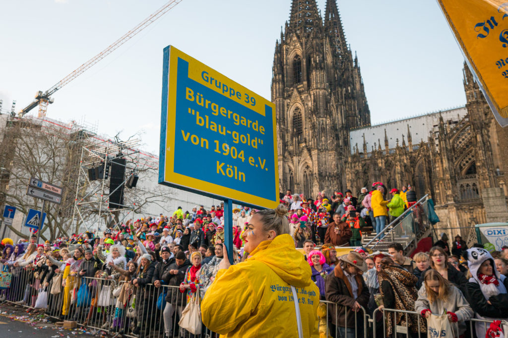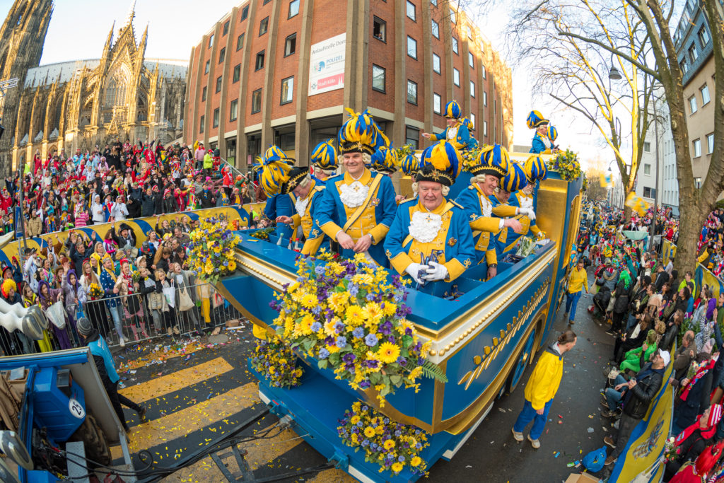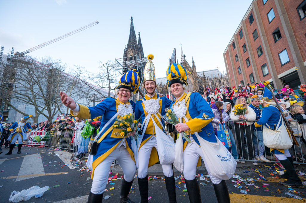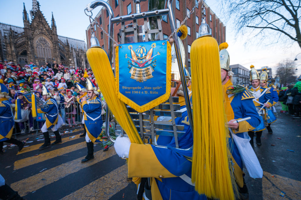 Erleben Sie mit der Bürgergarde „blau-gold“ den Rosenmontagszug vor der herrlichen Kulisse des Kölner Doms.