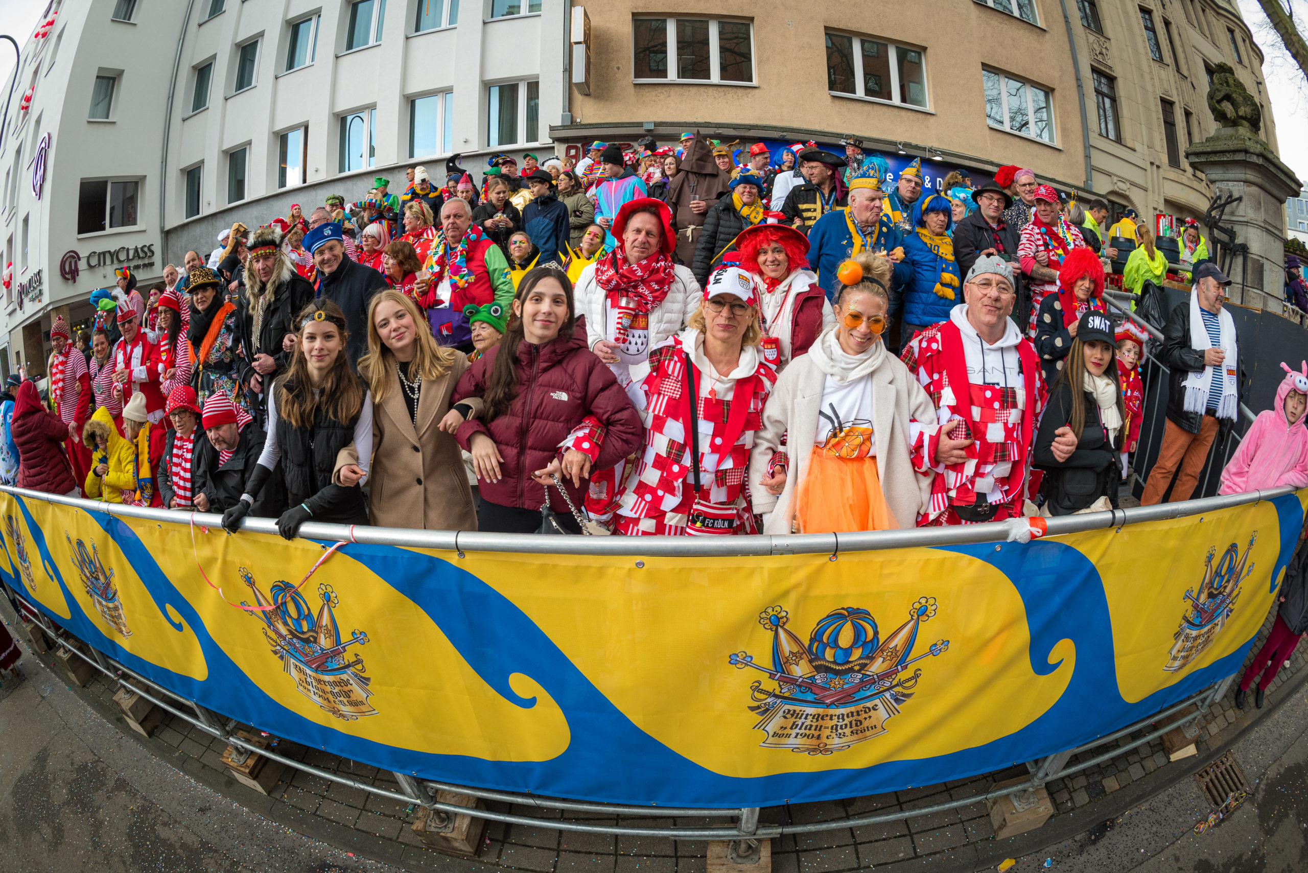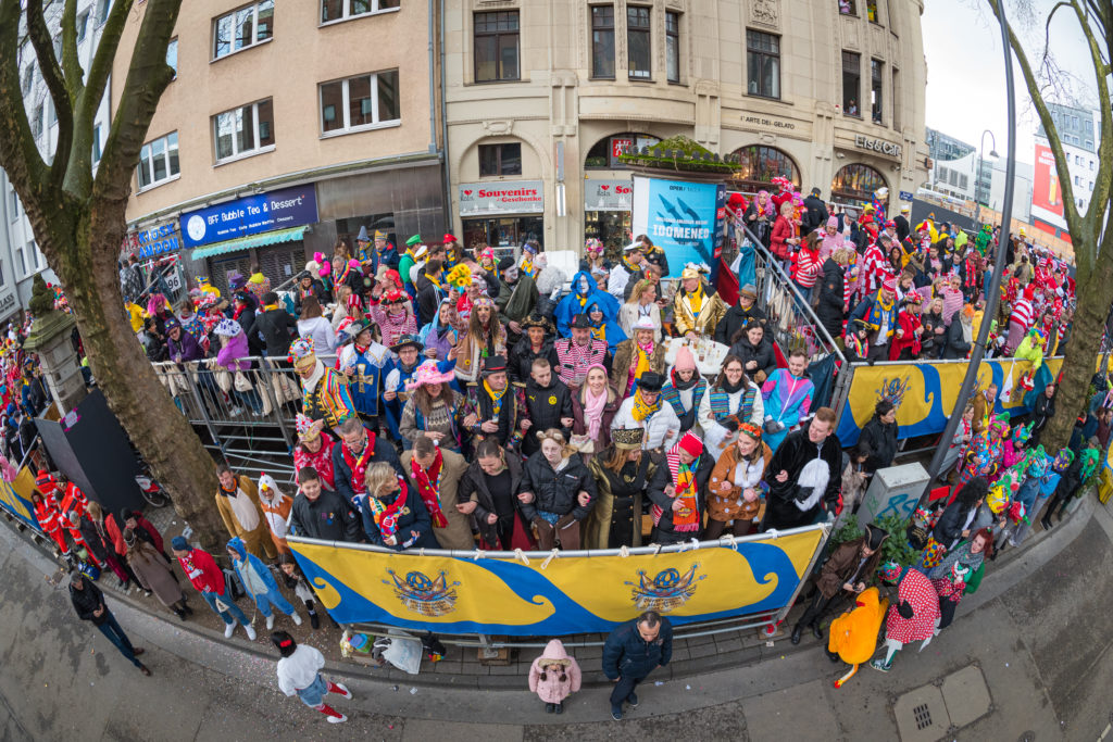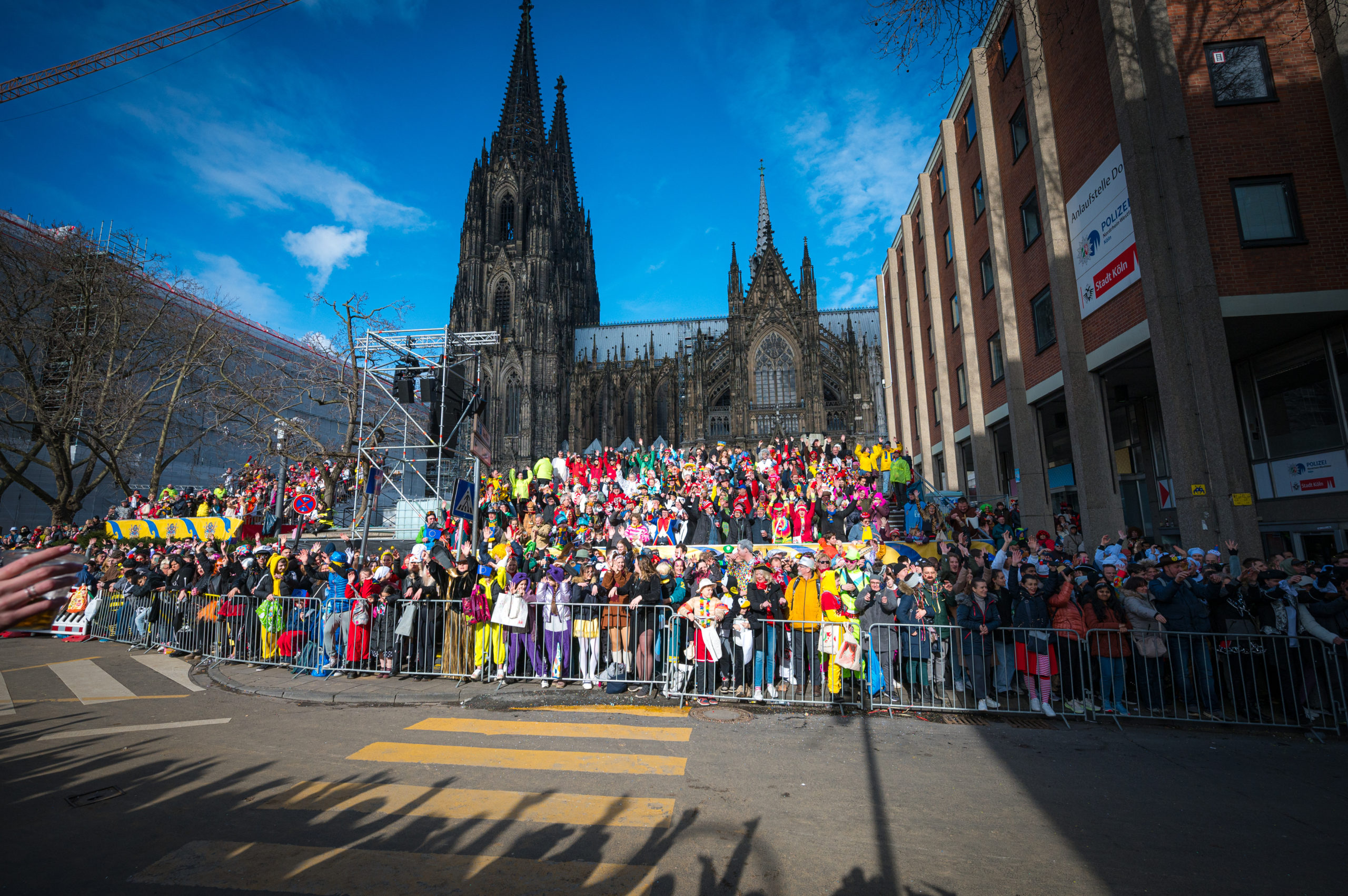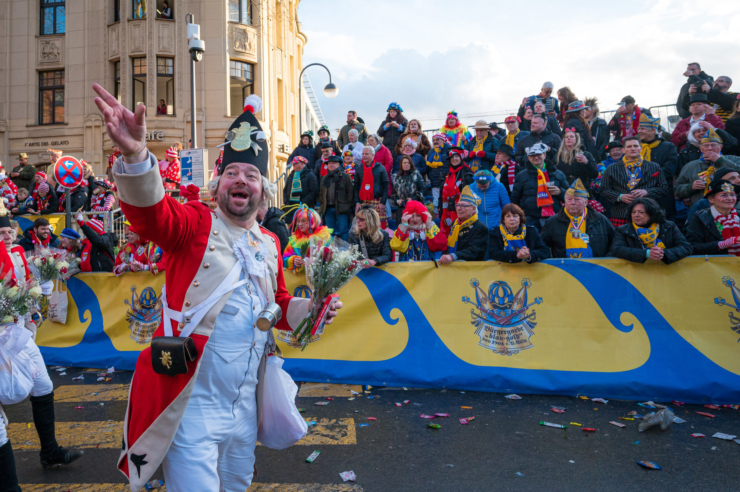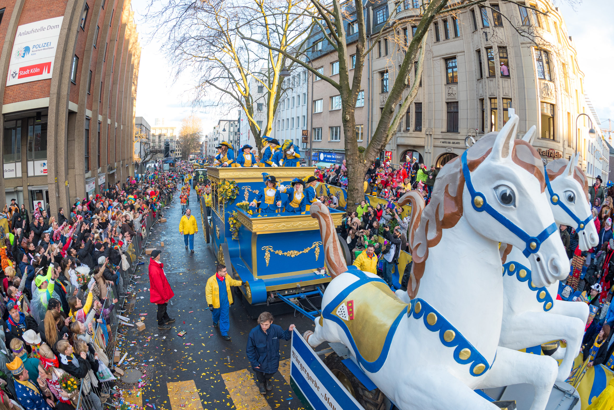 Erleben Sie mit der Bürgergarde „blau-gold“ den Rosenmontagszug vor der herrlichen Kulisse des Kölner Doms.